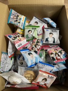 そう1つ前のブログで紹介した”甘党男子”のお菓子も配りました。こちらも自分で好きなのを選ぶ方式。子ども達にはキャラメルが大人気でしたよ。