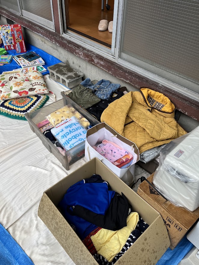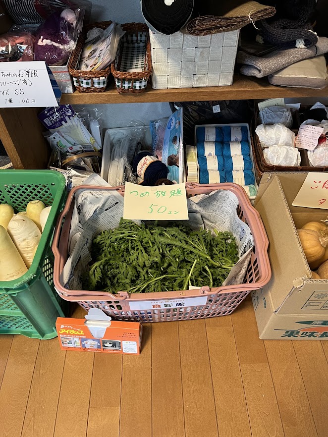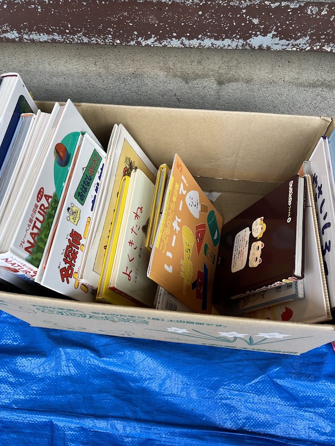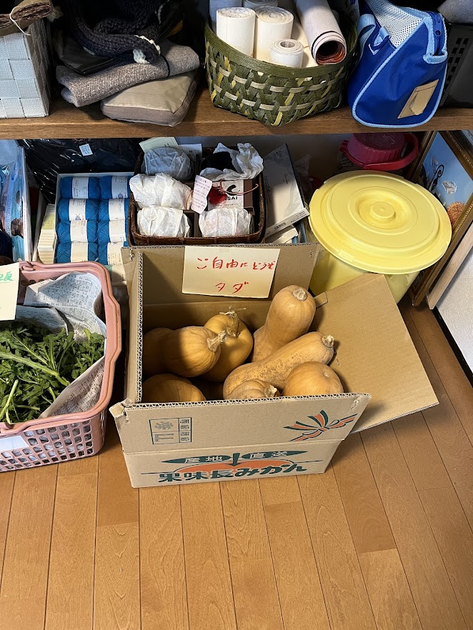 軒下に並べたご自由にお持ち帰りOKの品々が少し濡れてしましましたね。